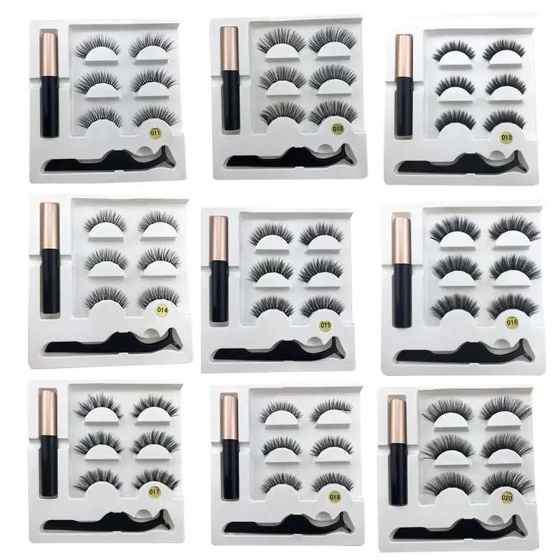 3pair 5 Magnetic Eyelashes 3D Faux mink Eyelashes Magnet Lashes Magnetic Liquid Eyeliner&Magnetic False Eyelashes & Tweezer Set